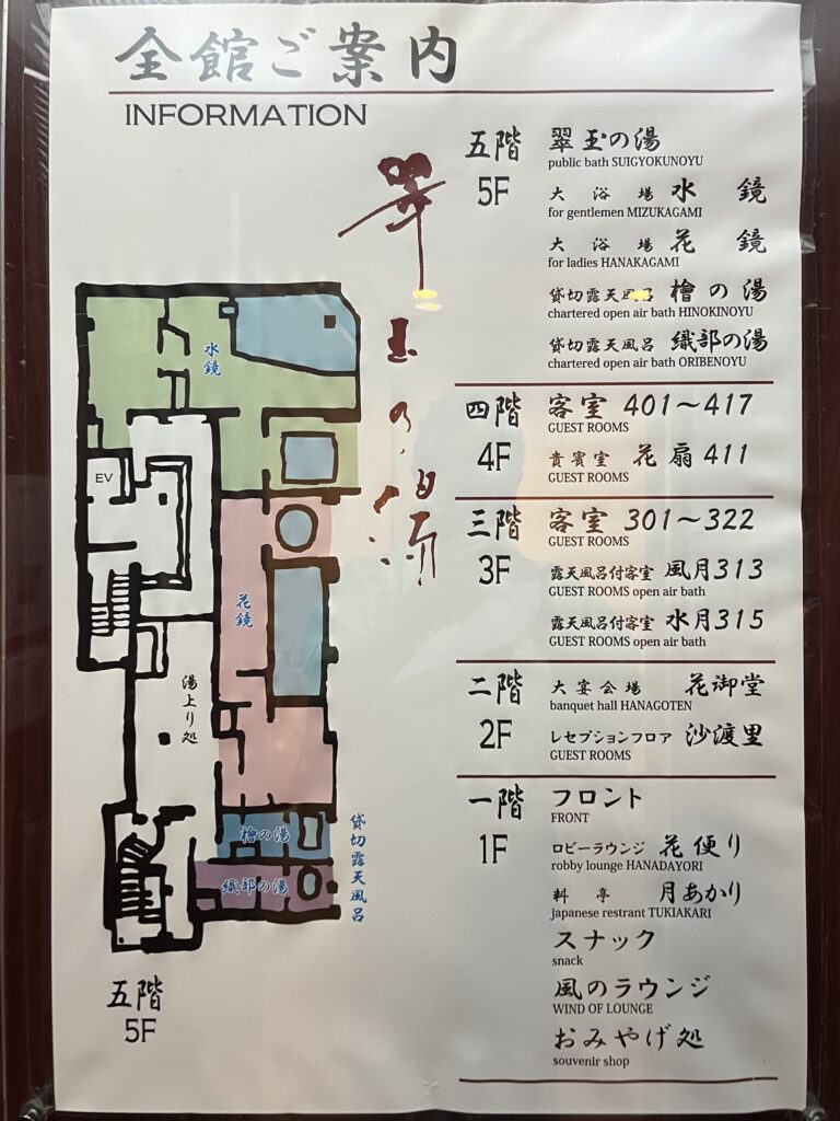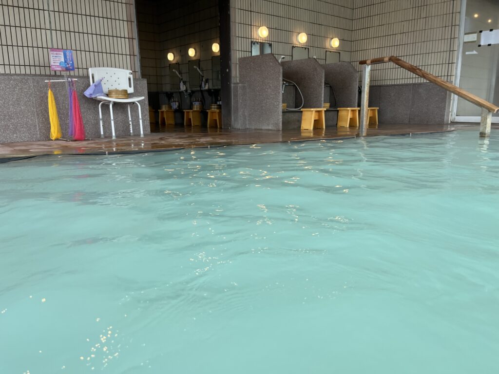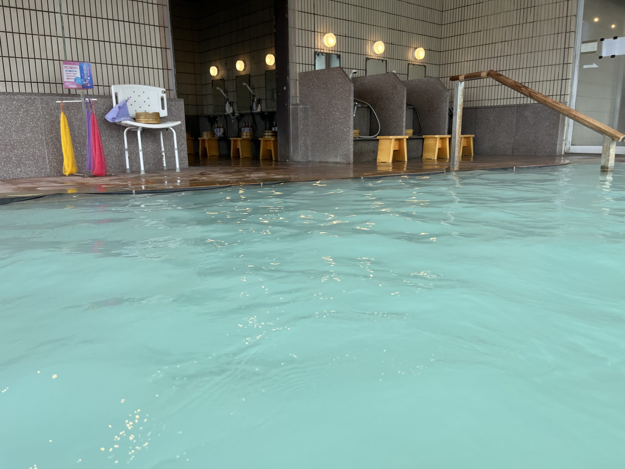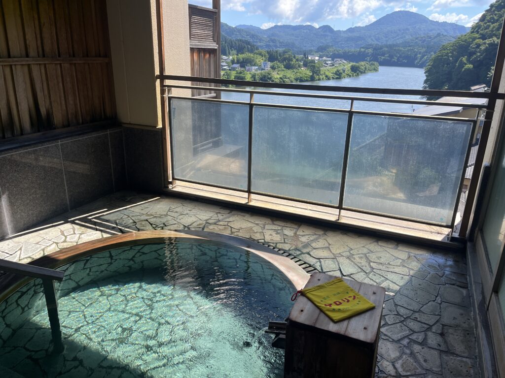 温泉は硫化水素が香る硫黄泉。宿泊当日は内風呂が白濁で露天風呂がエメラルドグリーンでしたが、翌朝は内風呂が白濁のエメラルドグリーンで露天風呂は透明でした。