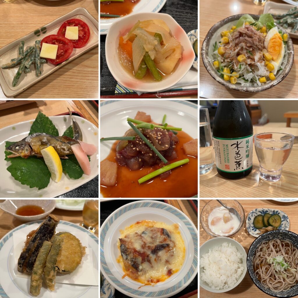 食事処には合宿の学生の感謝の色紙がたくさんあります。部屋数が少なくてもロフトがあるので人数が泊まれる訳です。夕食のメインは刺身でも食べられる鹿の焼き肉でした。