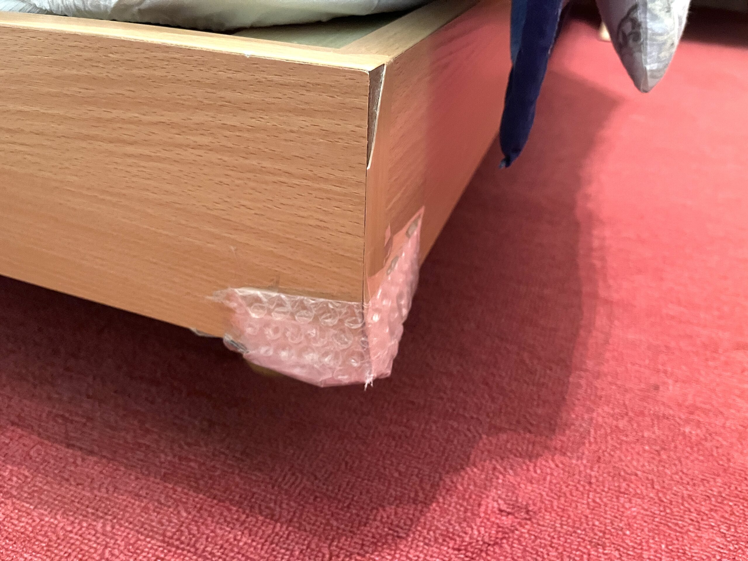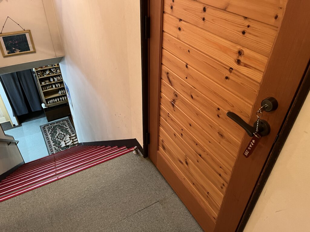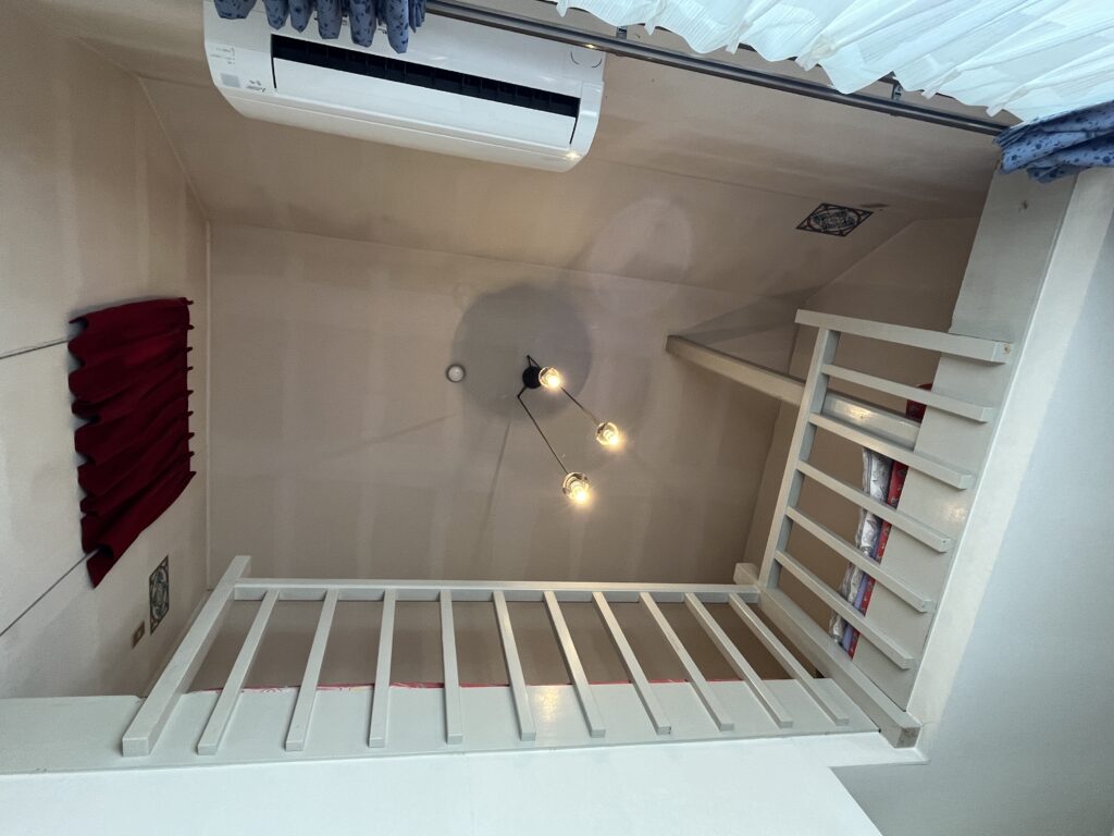お風呂から上がって部屋に戻りベッドに仰向けになって驚きました。高い天井にロフトがあって、もう2人分の布団のスペースがあります。梯子がないので気が付きませんでした。