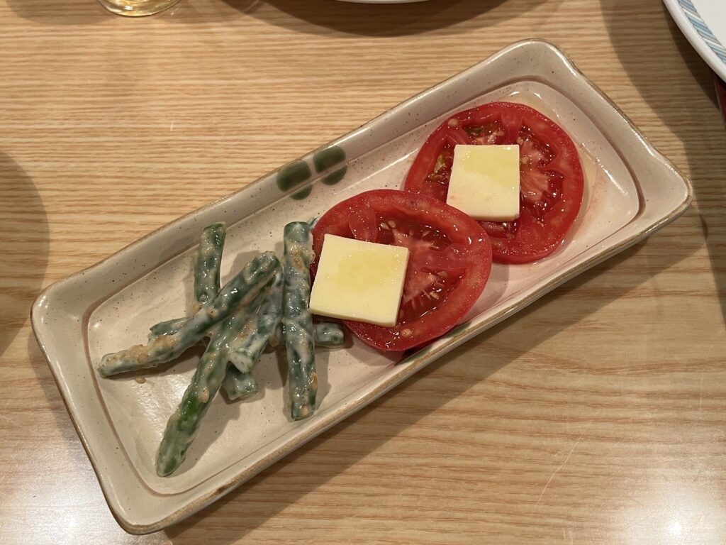 【前 菜】アスパラのゴマダレ和え・トマトのチーズのせ