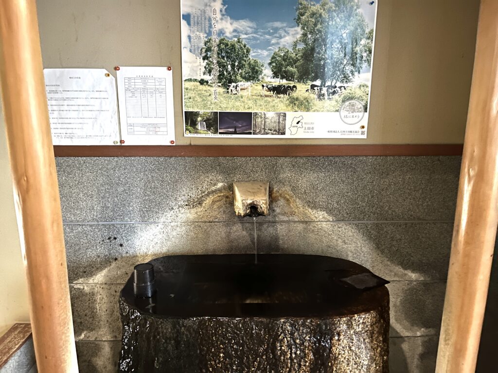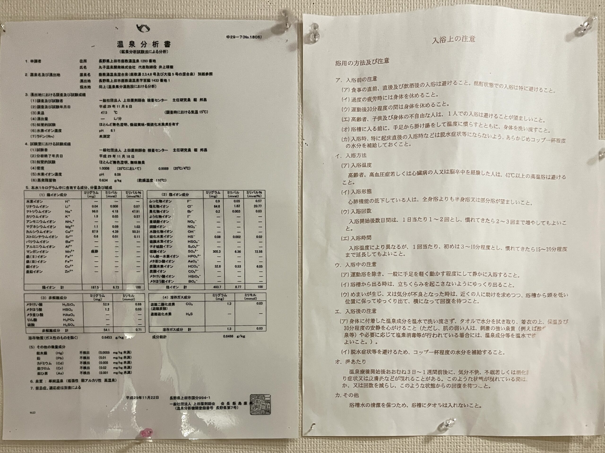 温泉の内風呂は熱めですが、露天風呂はぬるめです。鹿教湯温泉は本当に飲みやすい泉質です。ゴクゴク飲みたかったのですが、飲泉所の流量が細くてチョット残念でした。