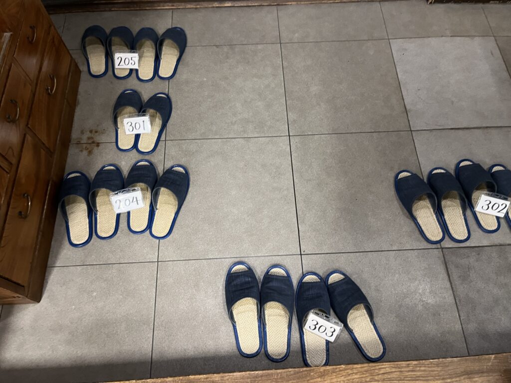 食事処ではスリッパに部屋番号の札を置いてくれます。夕食時だけではなく、朝食時にもありました。このような気遣いがあると、すべてに配慮があると思えるので安心できます。