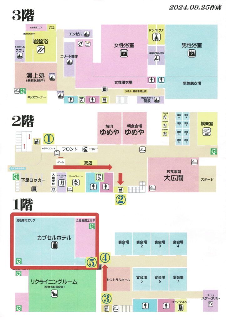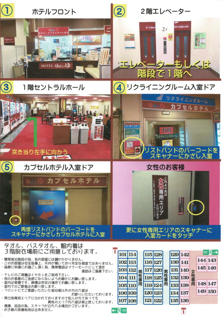 入浴時間 男性24時間/女性早朝3時〜5時が清掃時間の為入浴不可