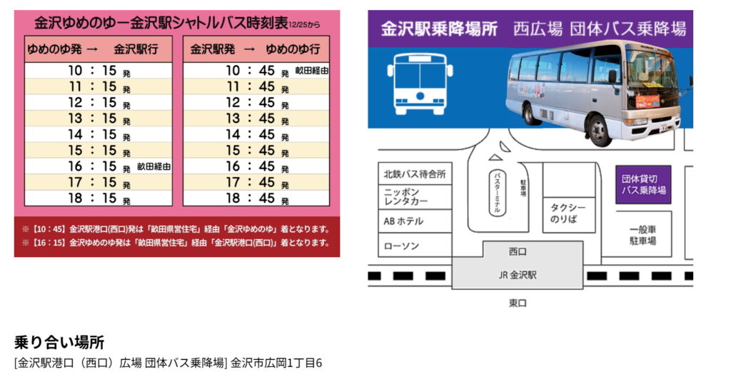 【アクセス】金沢駅から無料送迎バスあり※発車前に館内アナウンスあり