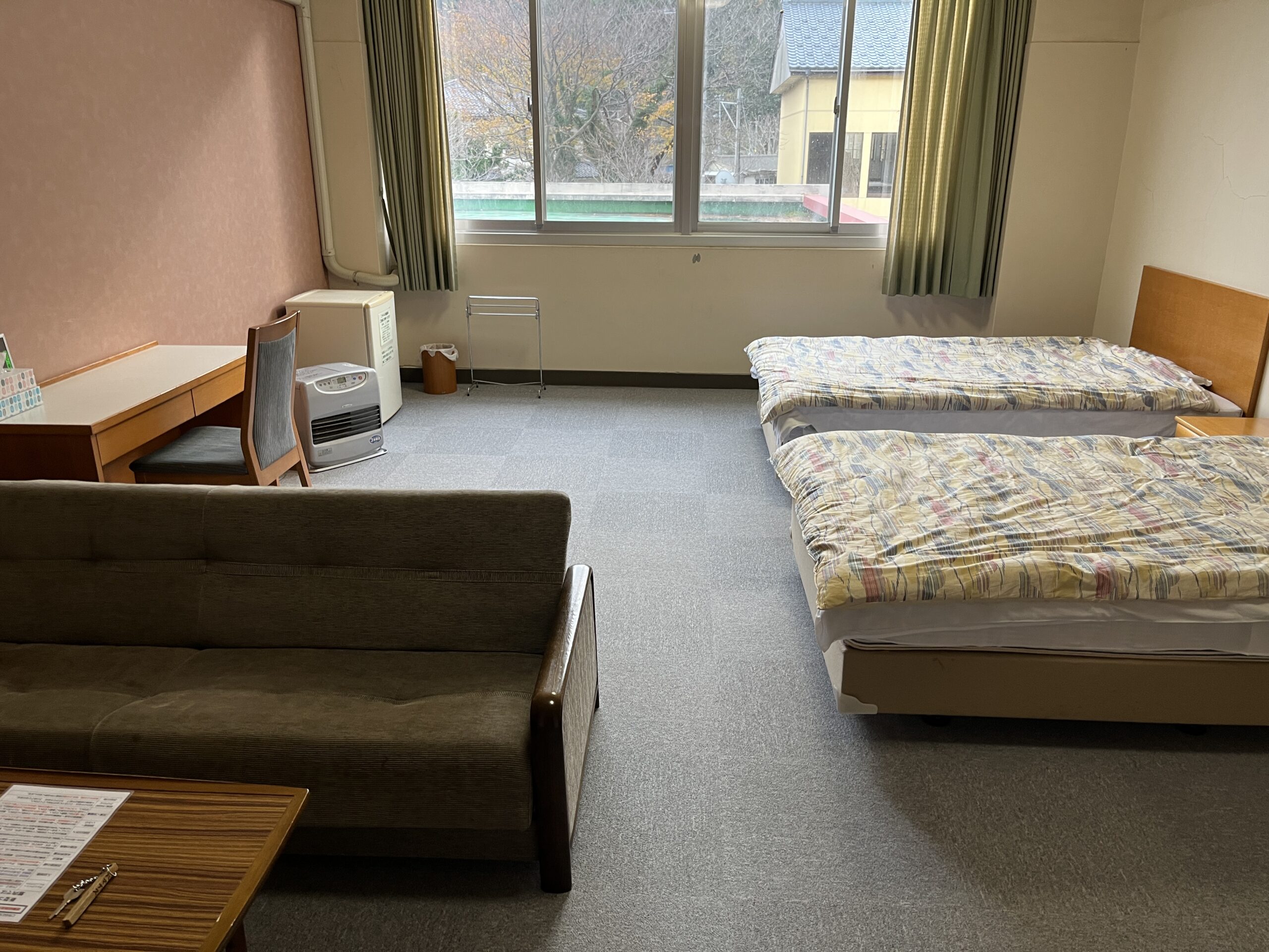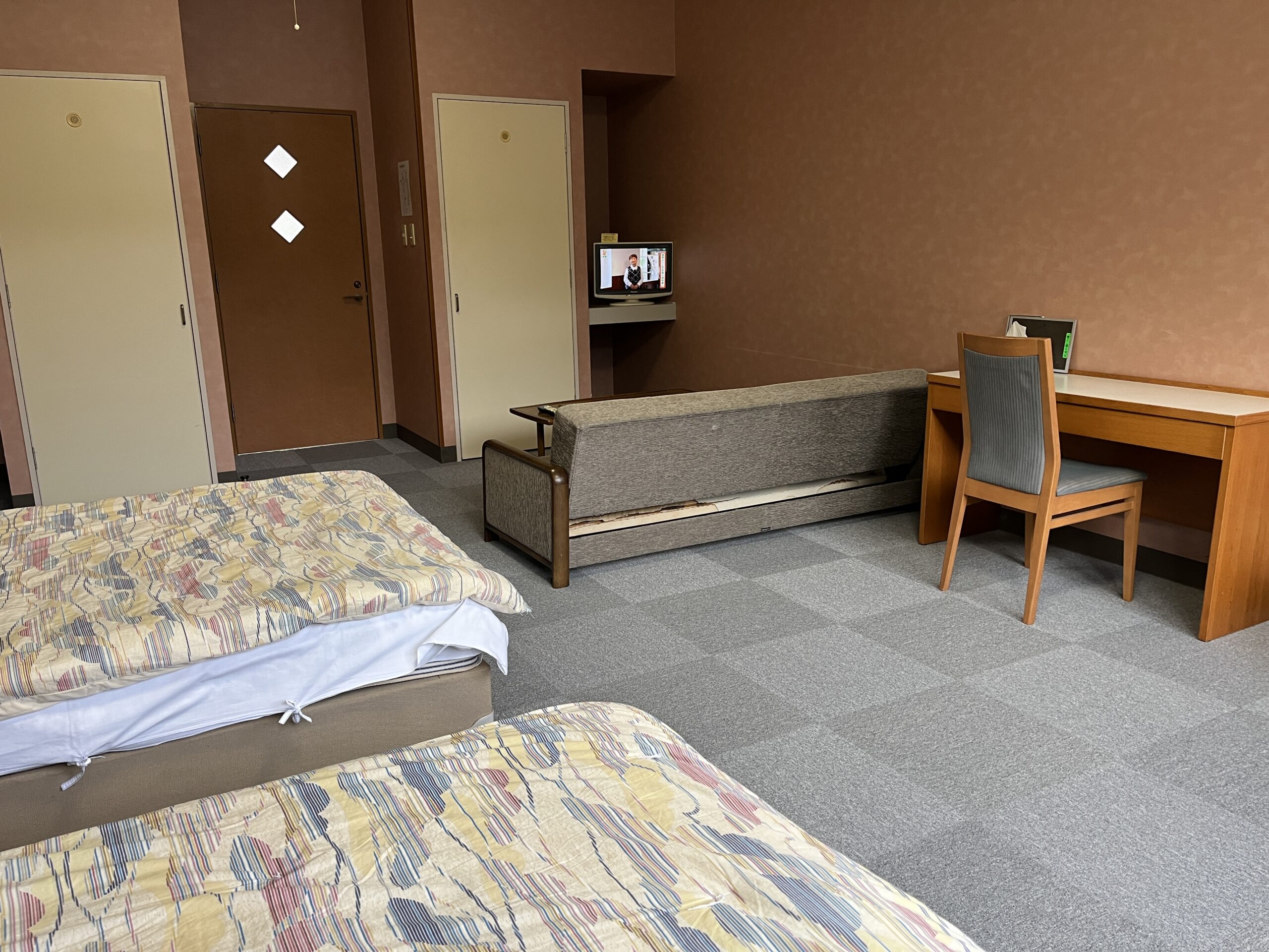 共同トイレ洗浄機能なし。宿指定Wi-Fiは不安定。水ポットなし