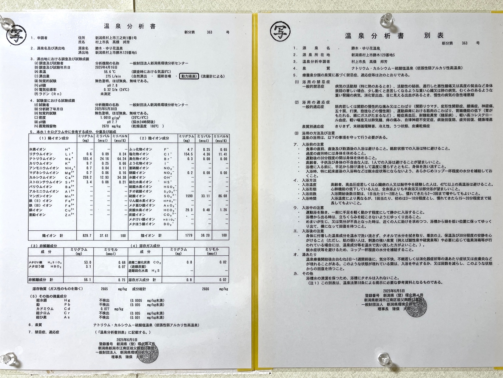 今回は3,000円でお願いしましたが、明細には宿泊4,050円で夕・朝食4, 000円でした。温泉は500mほど離れた温泉施設、ゆり花温泉から引湯しています。源泉かけ流しで少し熱めのあっさりとした泉質でした。