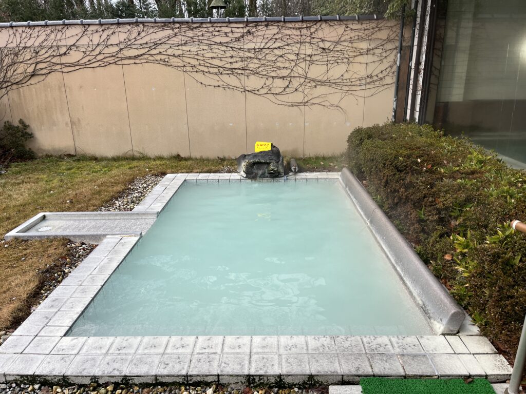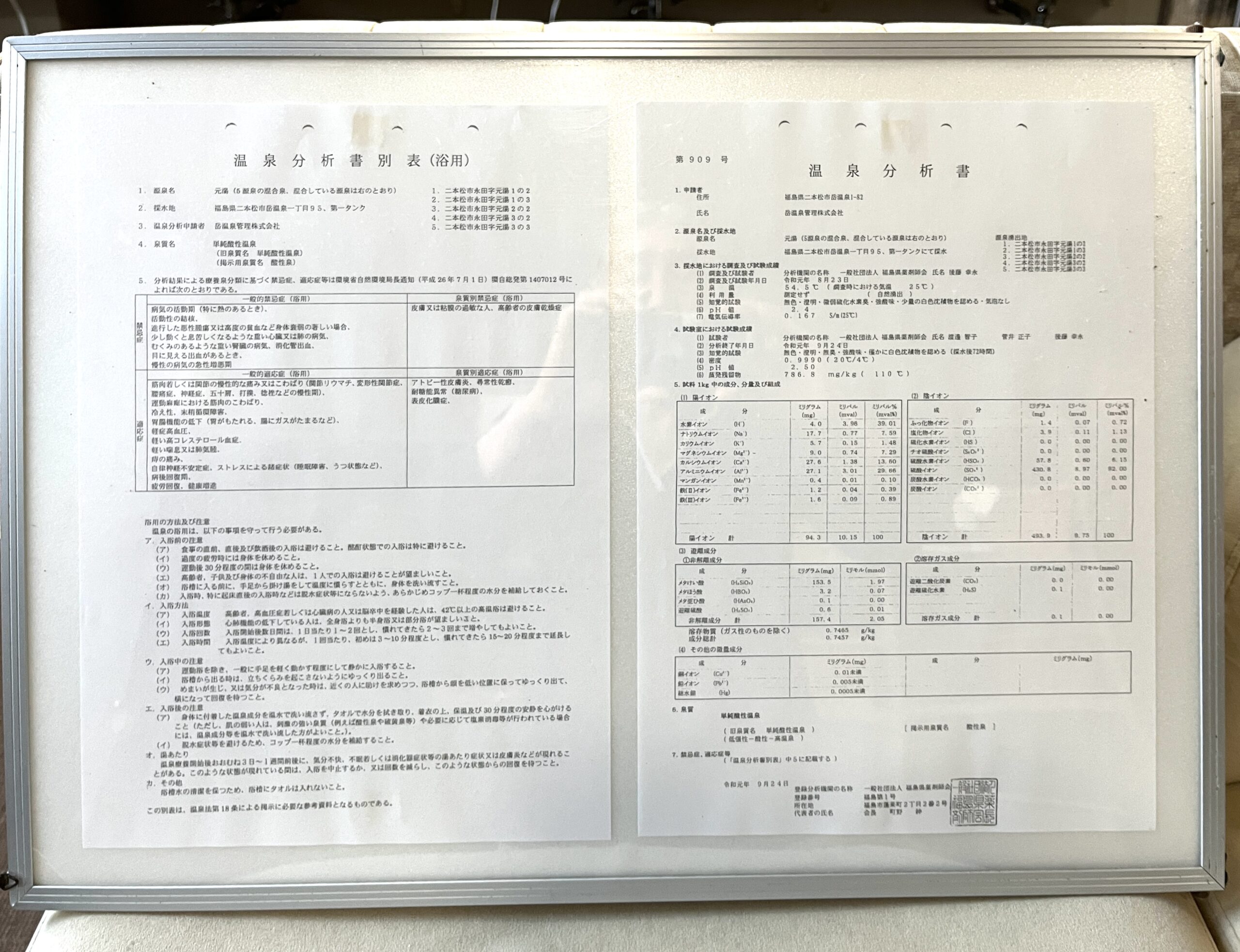 温泉は安達太良山から8Kmを40分以上かけて引湯しています。露天風呂は白濁でしたが、内風呂は割と透明な感じでした。有料のスーパー陶盤浴は、ひとり60分3,000円が宿泊者は税込1,000円で利用できます。
