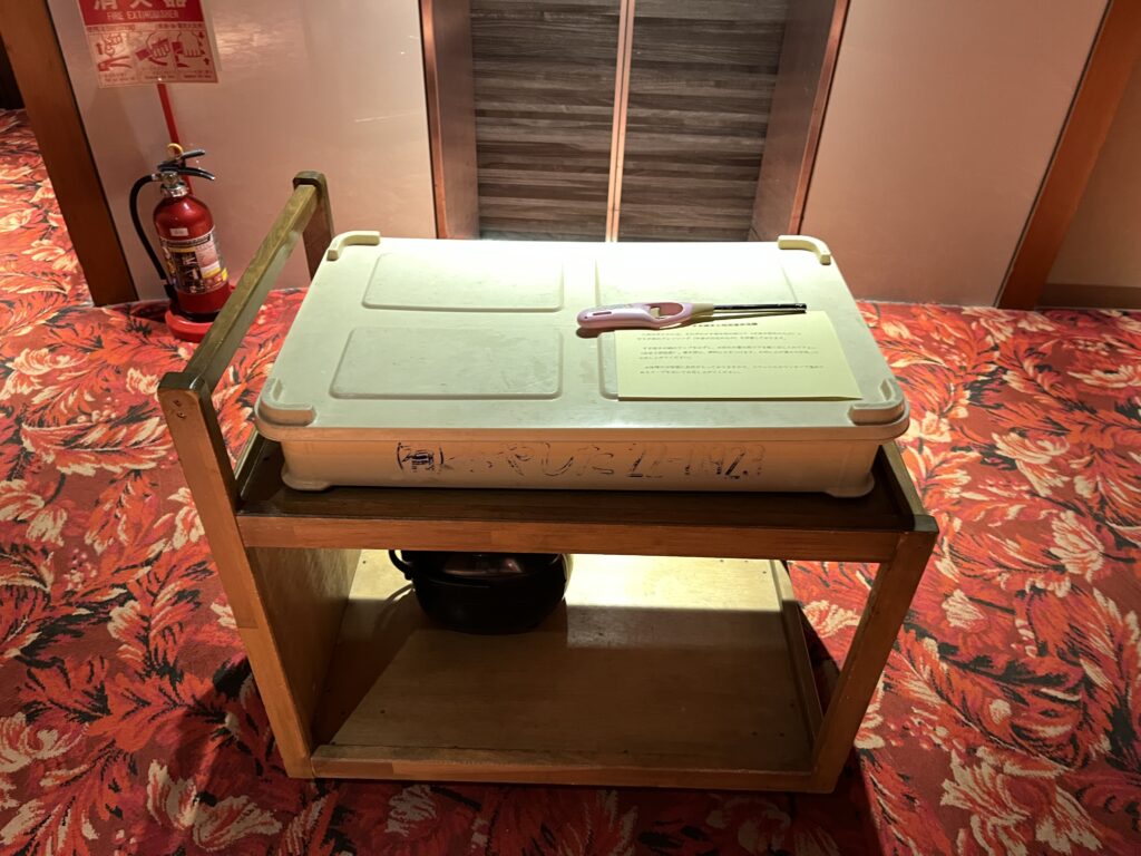 夕食はセルフ焼肉処『朧月』のプランがありますが、いつものように寝酒を忍ばせているので、部屋で食べるすき焼きプランを選択しました。しかし老眼と思い込みで大失敗をしてしまいました。夕食の写真にヒントありますが、わかるでしょうか?😂。