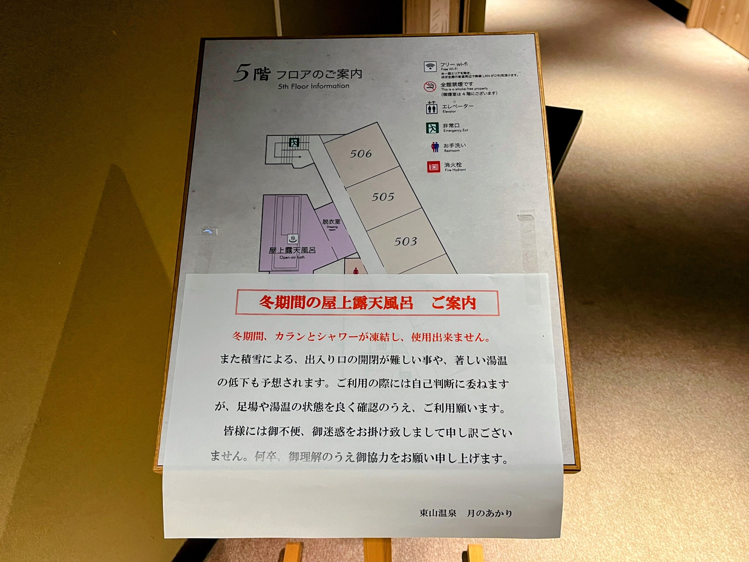 大浴場は女湯が広めで浴槽が2つあるようですが男女入れ替えは無しでした。5階屋上露天風呂も16時~24時までは女性専用時間です。男性は朝6時からですが、行くと先客がいます。粉雪と強風のなか何とか粘って写真を撮りましたが、寒かった―☃。
