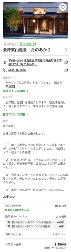 【アクセス】会津若松駅から周遊バス乗車~東山温泉駅下車。山側に向かって約800m歩きます。