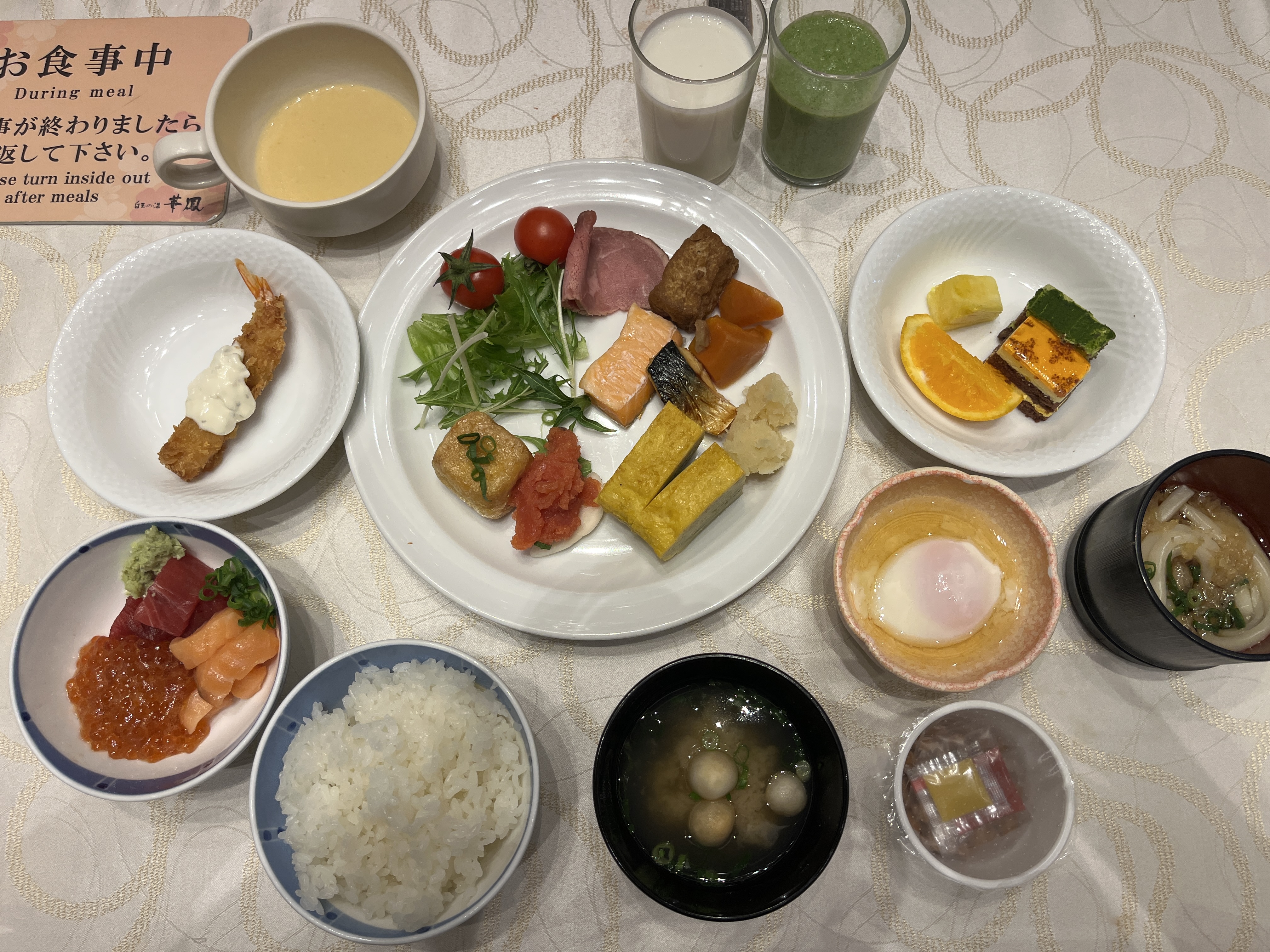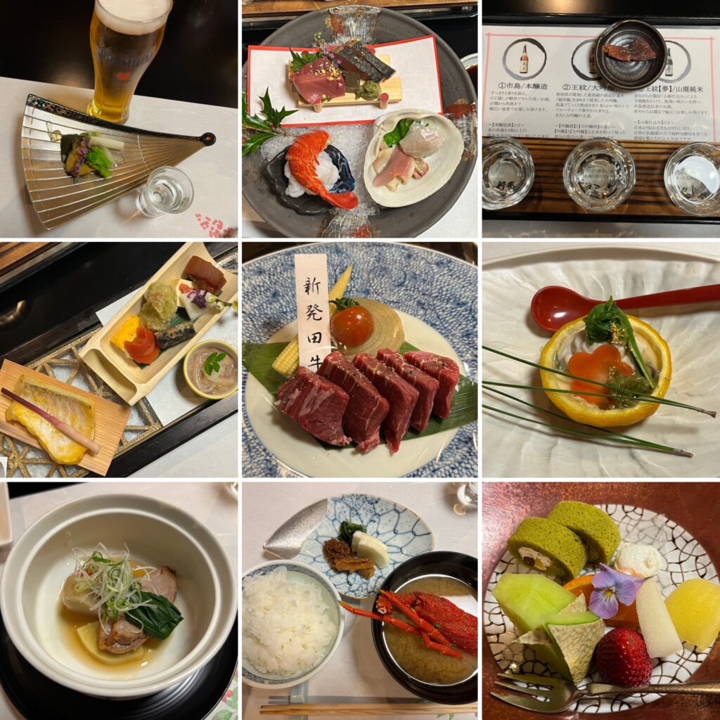 スタッフの服装もそうですが、浴衣や作務衣も華鳳とは違いました。憧れの越の里に来られて大感謝でしたが、帰りの車中で長男の娘の大学合格の報告が届き、ひとり暮らしの家電一式の購入を約束しちゃいました😂。