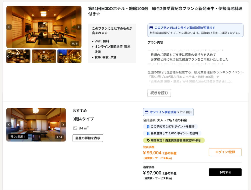 平日 同プランは2人で93,004円