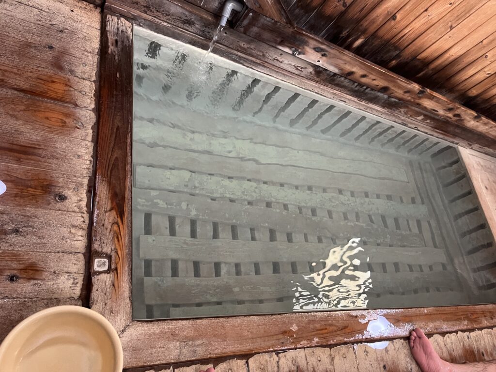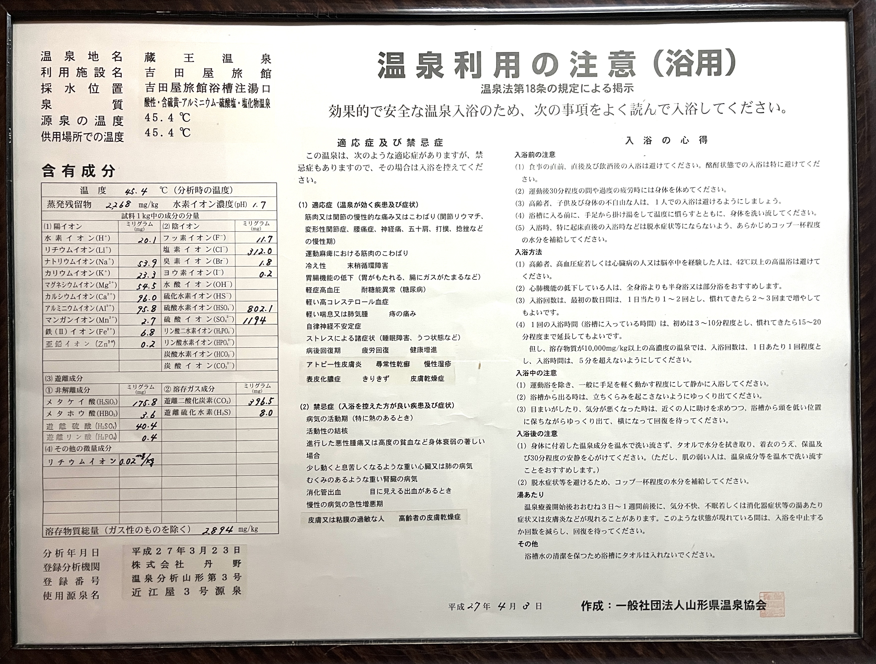 吉田屋さんは温泉がドバドバ溢れている印象でしたが、以前ほどではないようです。実際浸かってみると国内屈指の酸性度なのに思ったより優しく感じます。含有成分のバランスなのでしょうか、温泉の奥深さを体験した思いでした。